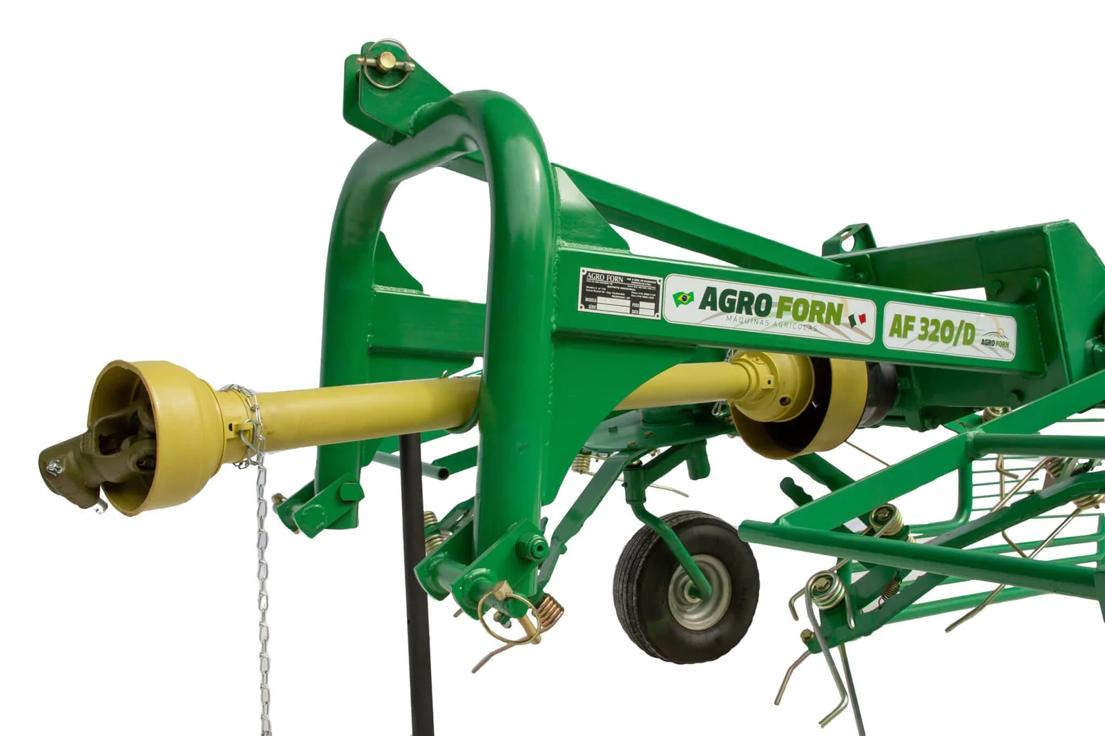 O ancinho duplo AFD 320/D da Agroforn, de fabricação nacional, permite enleirar com a qualidade de um trabalho manual, proporcionando forragem limpa, sem pedras e terra.